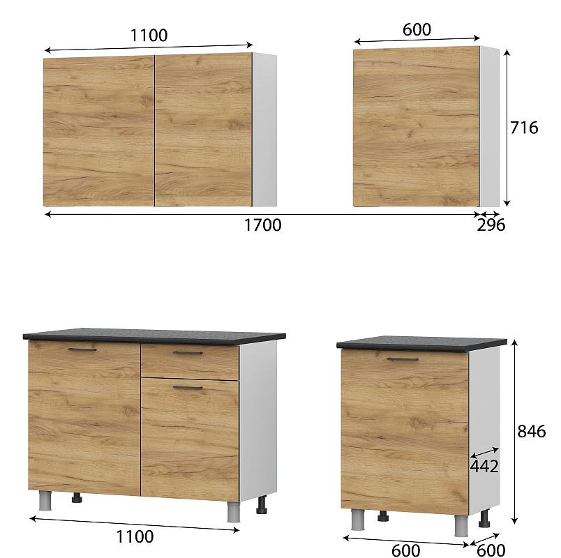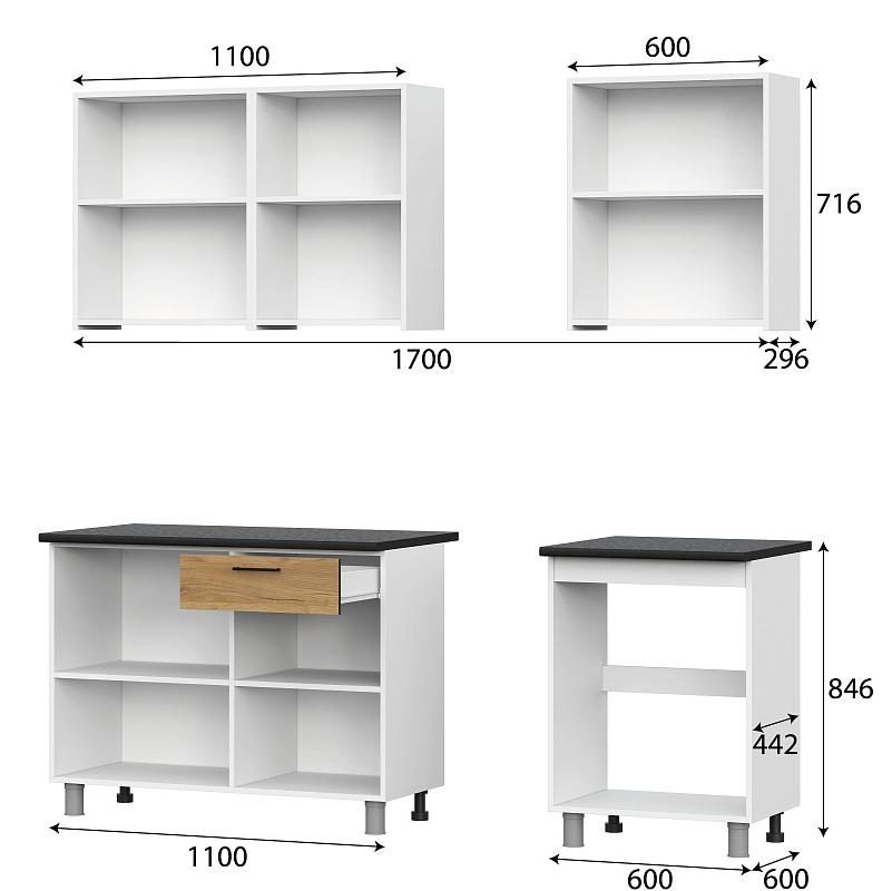 - Комплектуется столешницами:1100 х 600 х 26 мм и 600 х 600 х 26 мм