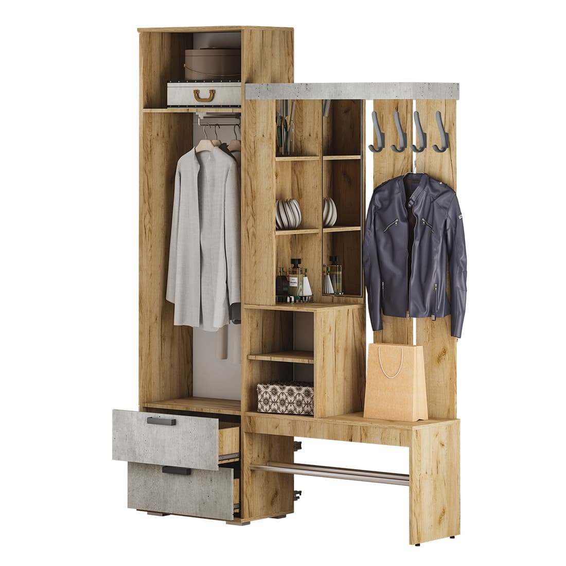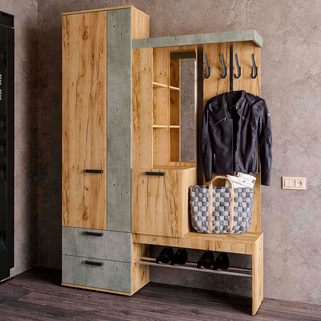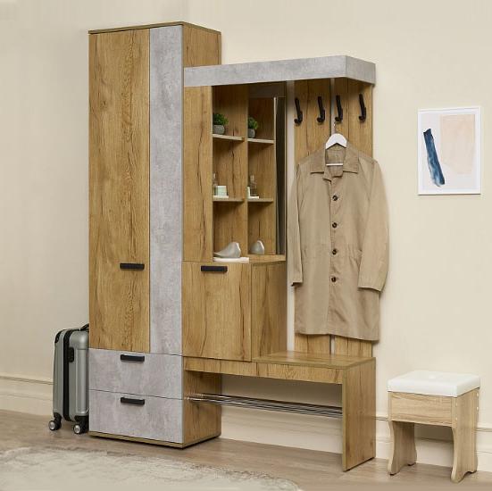 - Оригинальное цветовое решение крафт/бетон, четкость и лаконичность линий.