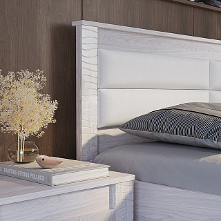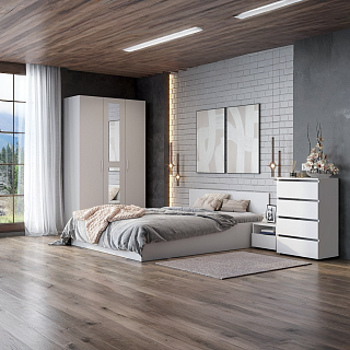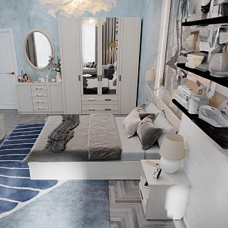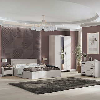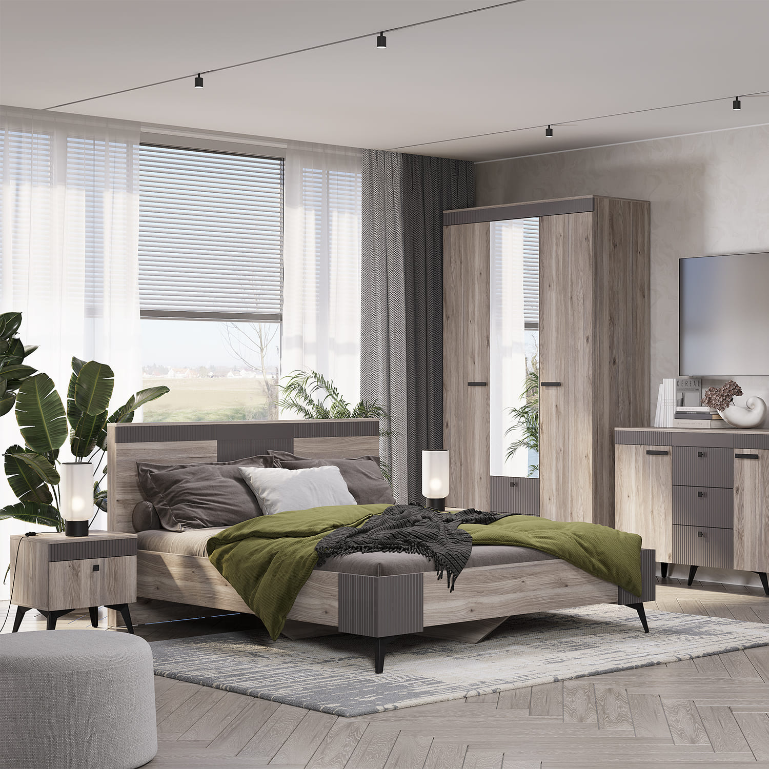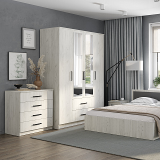Элегантная модульная спальня КАССАНДРА (Дуб Смоки / MF14) — это идеальное воплощение современной классики и актуальных интерьерных трендов, созданное для организации безупречного пространства для. Сдержанная и благородная коллекция выполнена в популярных пудрово-пыльных оттенках «дуб смоки», которые наполняют интерьер мягкостью, придавая спальне неповторимую атмосферу абсолютной гармонии и уюта. Продуманный модульный ряд позволяет собрать индивидуальную композицию под любые габариты комнаты: в серию входят комфортная двуспальная кровать с изящными вставками из МДФ, вместительный трехстворчатый шкаф с грамотным зонированием гардероба, функциональный широкий комод и эргономичные прикроватные тумбы. Контрастным акцентом на фасадах выступают стильные черные комбинированные ручки из АБС-пластика. Особая гордость коллекции — надежные металлические опоры высотой 150 мм, которые не только придают массивным модулям визуальную легкость, но и обеспечивают беспрепятственный доступ для влажной уборки и работы робота-пылесоса. Если вы планируете купить стильную модульную спальню в пудровых тонах на высоких ножках, коллекция КАССАНДРА станет абсолютно лучшим выбором благодаря своей эргономике, надежной фурнитуре с шариковыми направляющими и безупречному качеству исполнения каждой детали.