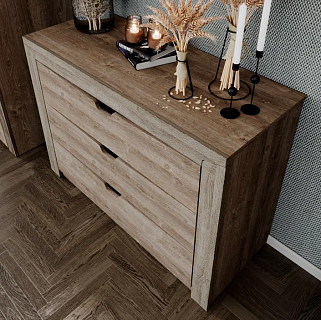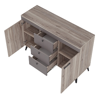 Комод КАССАНДРА КМ-12 // Дуб Смоки/MF14 - Ш 1352 х В 920 х Г 442 мм