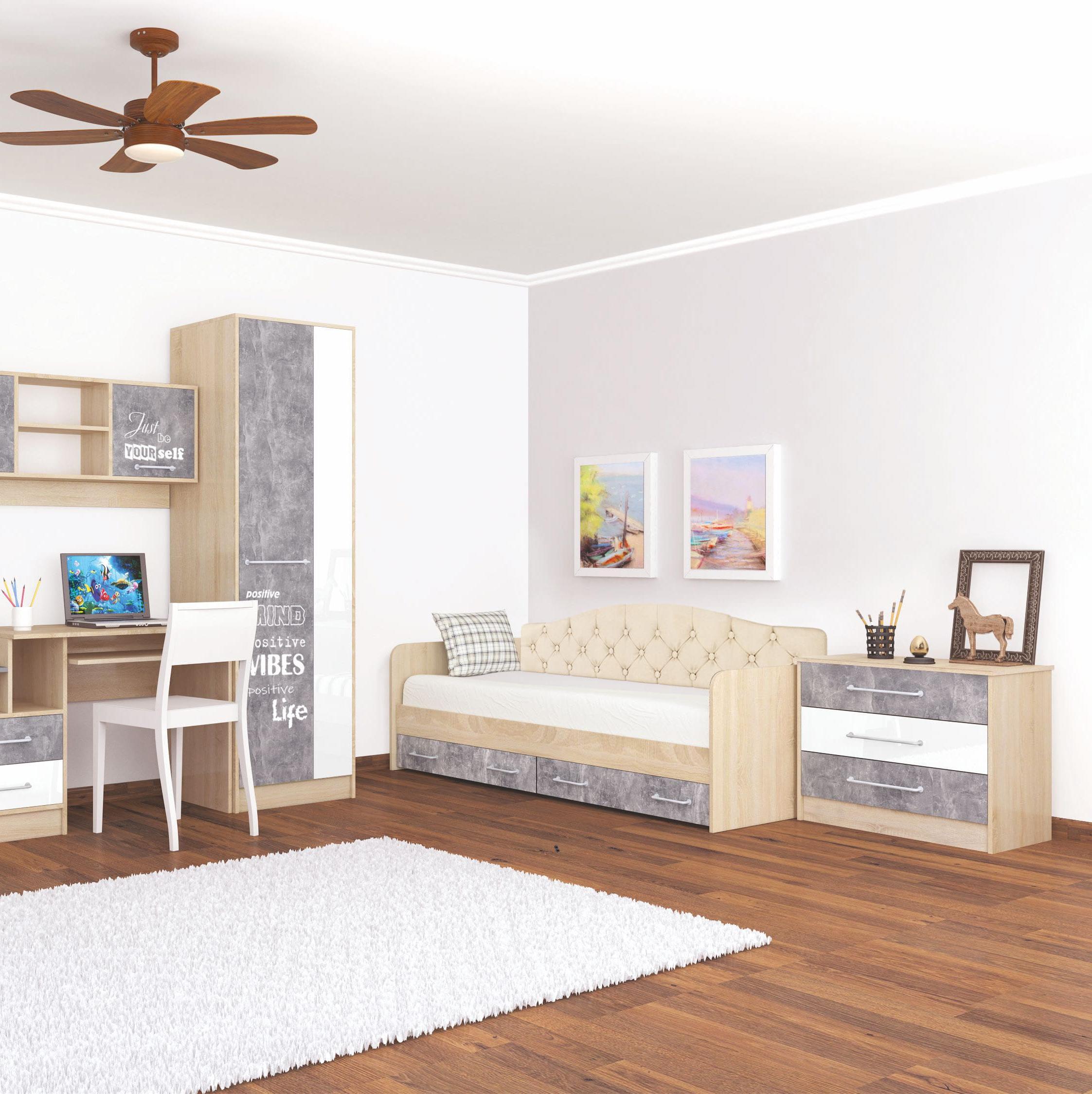 Комод КОЛИБРИ // дуб сонома, ателье светлое/акрил белый