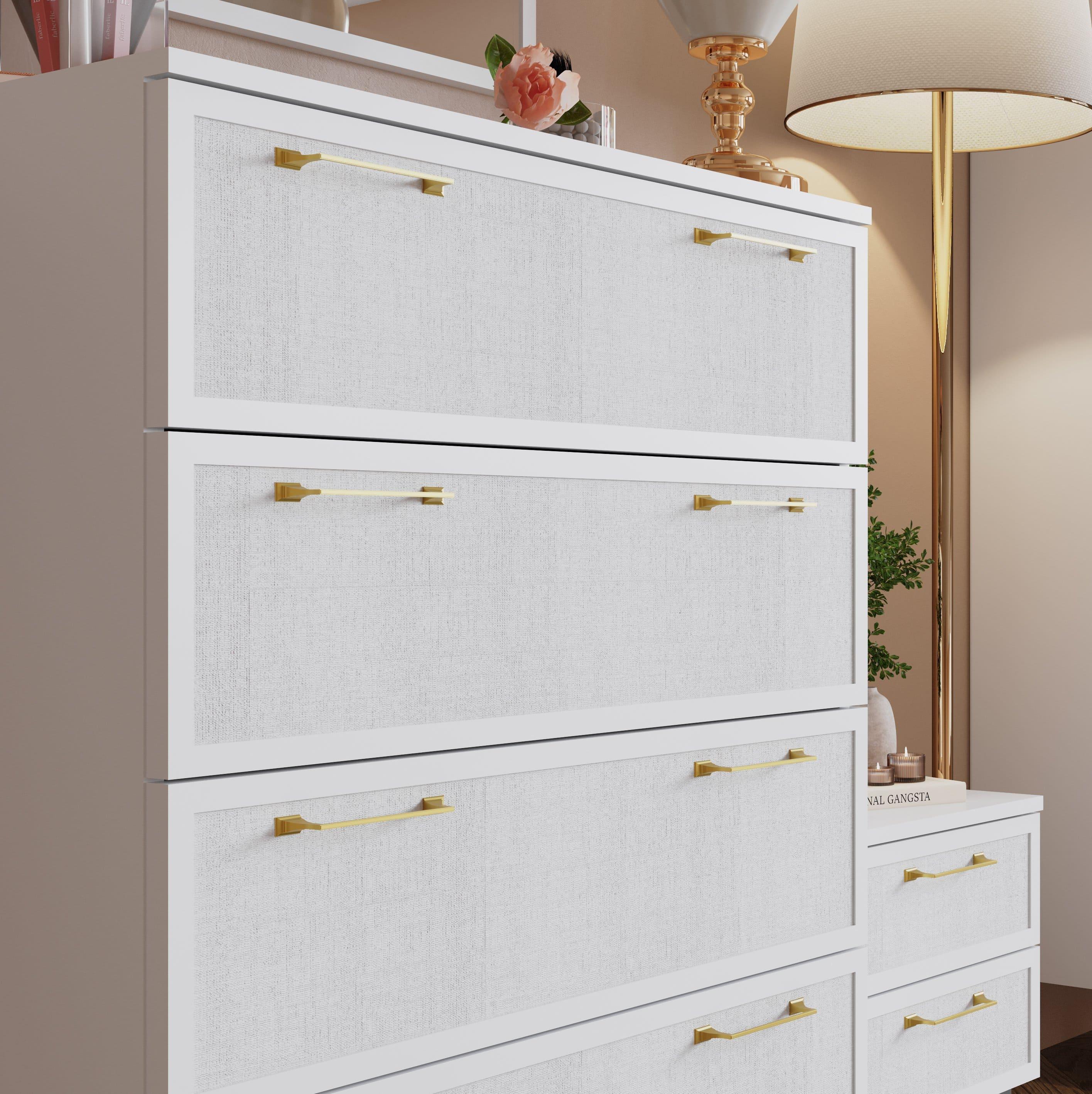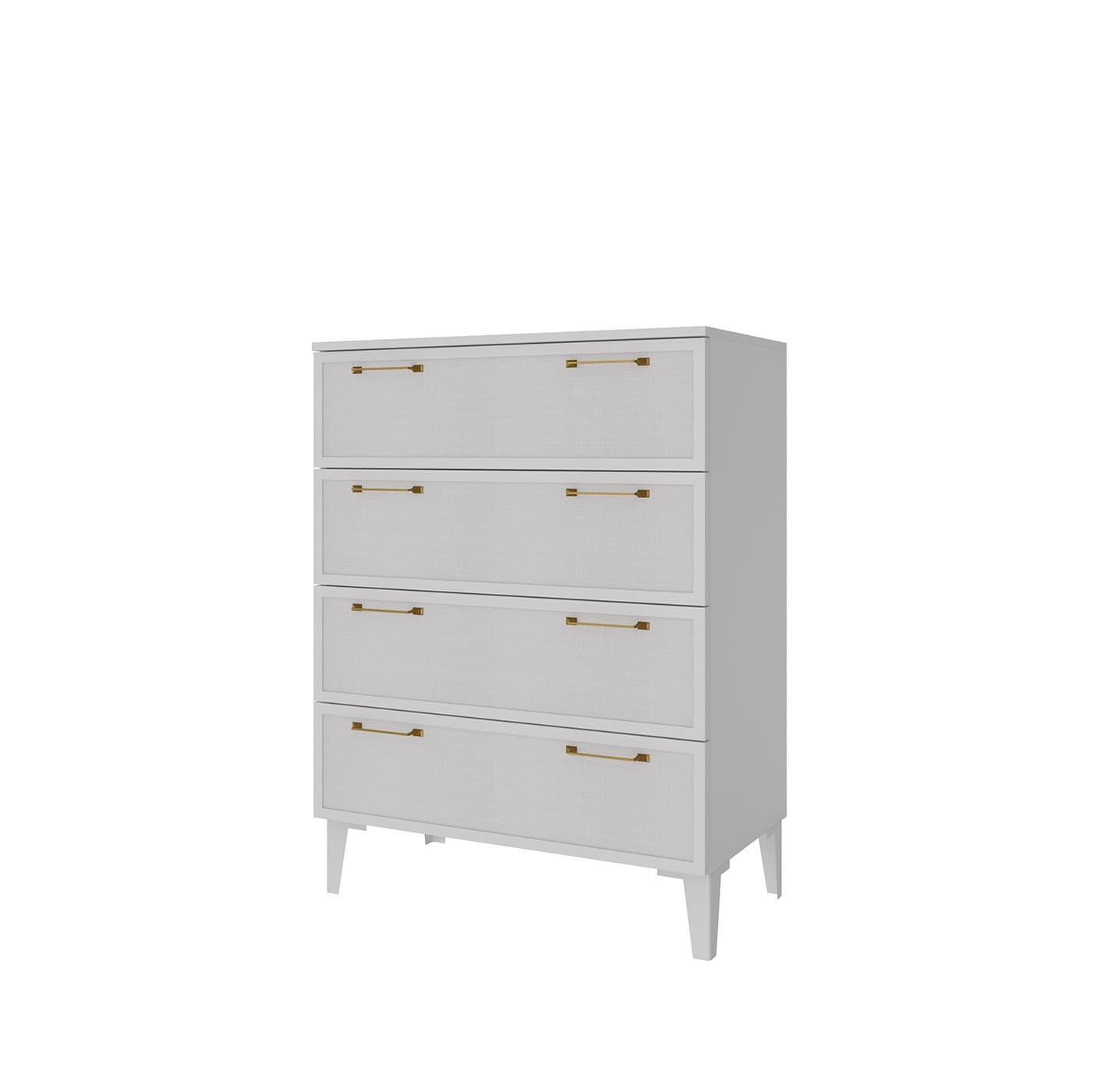 - Лаконичный дизайн с элегантными золотистыми ручками и возможностью выбора из двух цветовых решений (белый/белый или графит серый/графит серый) позволяет комоду легко вписаться в любой интерьер.