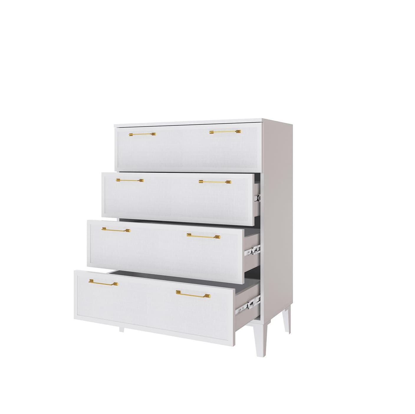 - Четыре выдвижных ящика на направляющих полного выдвижения с доводчиками обеспечивают удобное хранение одежды, белья и других вещей.