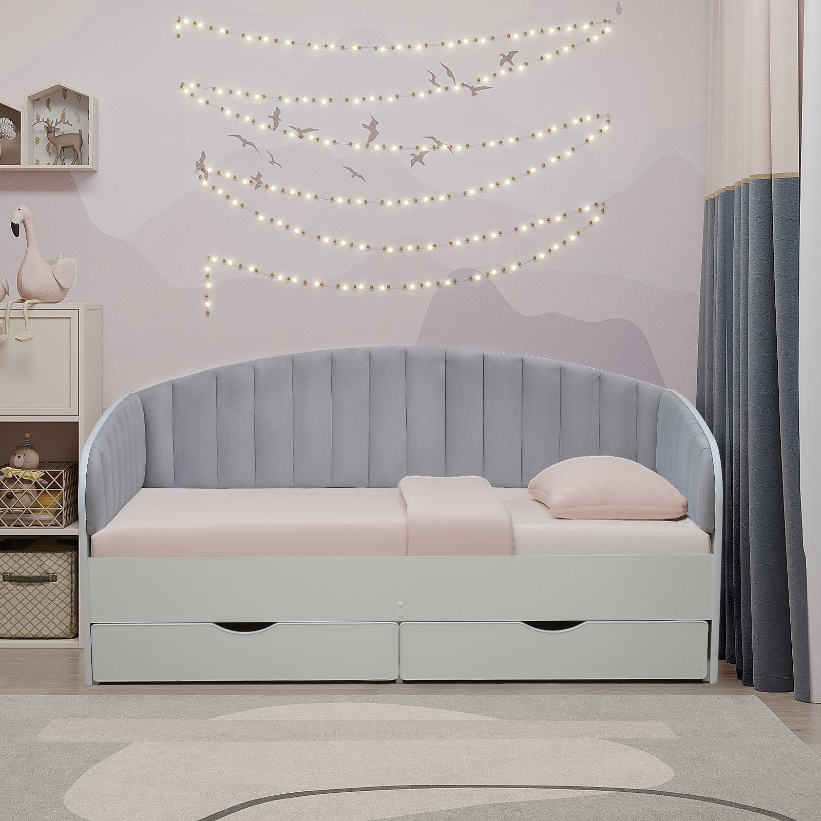 Современная Кровать-12.1 с мягкими спинками в эффектном сочетании белого корпуса и обивки велюр графит станет стильным акцентом в интерьере детской или подростковой комнаты. Благодаря компактному размеру 800х1600 мм и продуманной конструкции с тремя мягкими бортиками, эта модель по форме напоминает уютную софу, создавая защищенное пространство для комфортного сна и отдыха. Надежное основание-ладе обеспечивает необходимую поддержку матраса, а два ящика на колесах-роликах позволяют легко организовать хранение постельного белья или любимых игрушек, поддерживая порядок в комнате. Если вы ищете долговечную мебель с актуальным дизайном и планируете купить детскую кровать-софу, эта функциональная графитовая кровать с ящиками станет идеальным выбором, объединяющим эстетику минимализма и повседневное удобство.