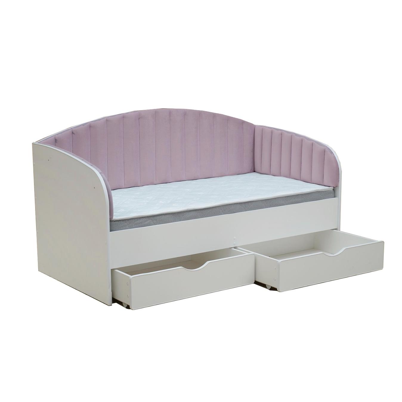 Очаровательная кровать-12.1 с мягкими спинками в сочетании чистого белого корпуса и изысканной обивки велюр светло-сиреневой превратит детскую комнату в уютное и стильное пространство. Благодаря компактному спальному месту 800х1600 мм и наличию мягких бортиков с трех сторон, эта модель идеально заменяет привычную софу, обеспечивая ребенку чувство защищенности во время сна и комфорт во время отдыха днем. Основание типа «ладе» гарантирует правильную эксплуатацию матраса, а два ящика на колесах-роликах позволяют рационально использовать место под кроватью для хранения игрушек или спальных принадлежностей. Если вы ищете мебель, которая сочетает в себе нежную эстетику и функциональность, и планируете купить детскую кровать-софу, эта сиреневая кровать с ящиками станет безупречным выбором для создания сказочной атмосферы в интерьере.