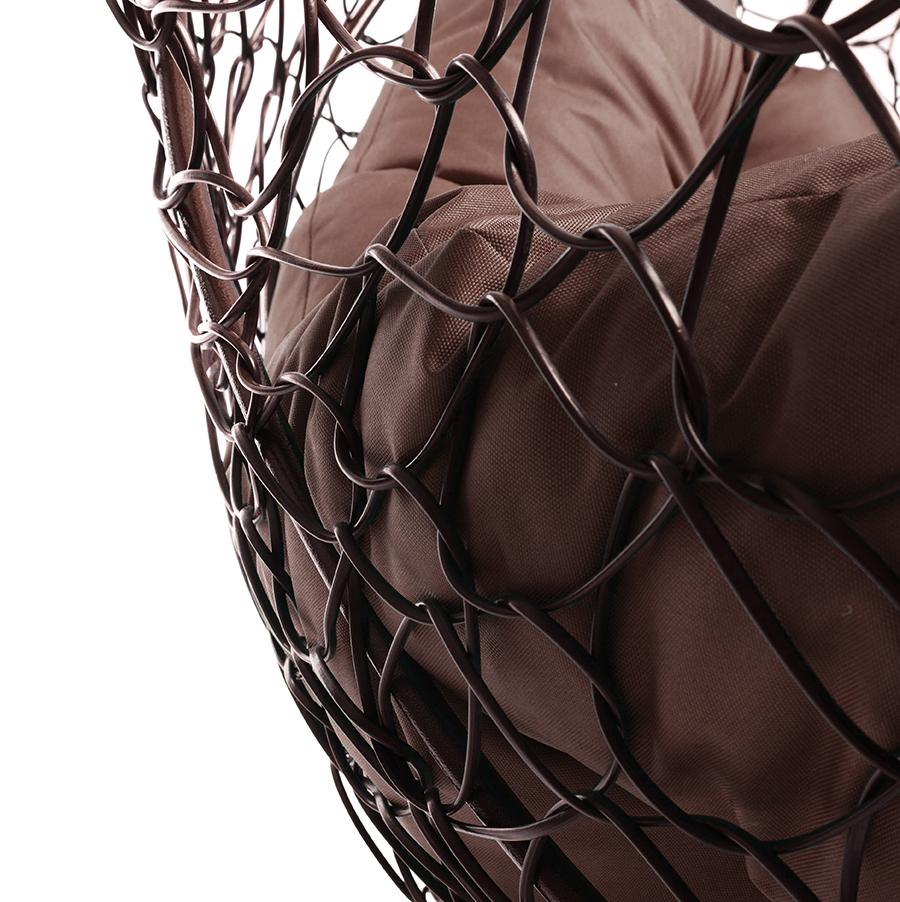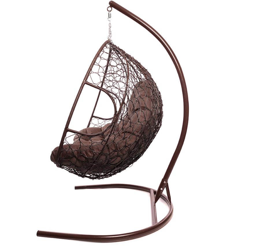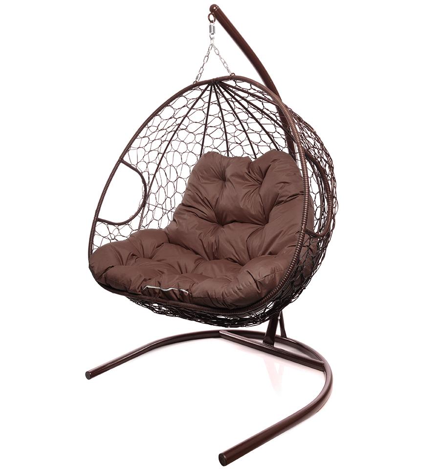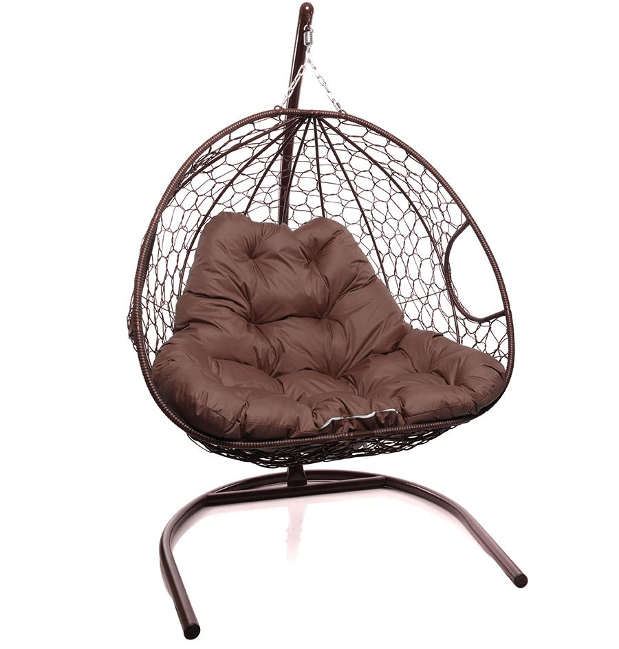 Кресло подвесное ДЛЯ ДВОИХ с ротангом // коричневая подушка, коричневый