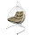 Кресло подвесное ДЛЯ ДВОИХ с ротангом // бежевая подушка, белый