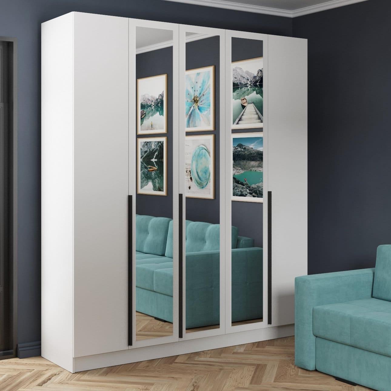 Шкаф пятистворчатый МАДРИД (2,0) с 3 ящиками внутри с зеркалом // белый