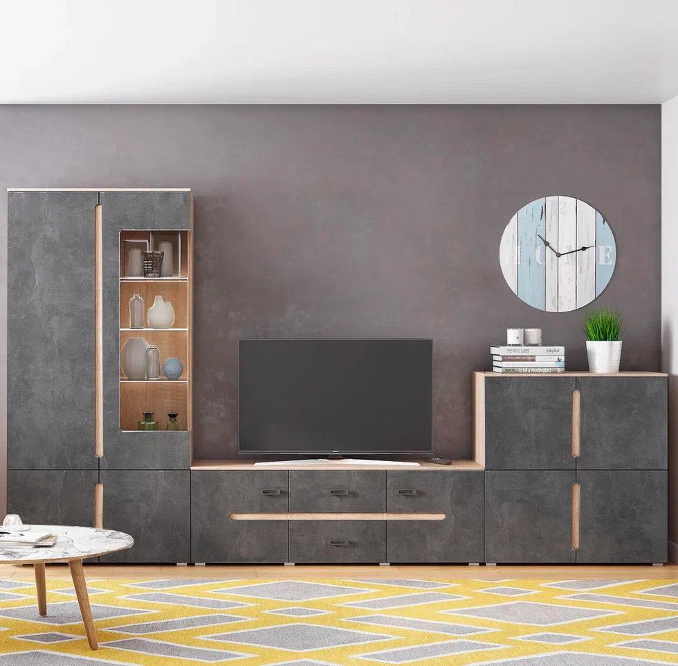 Тумба четырехстворчатая КИМ // Дуб сонома,Бетон темный