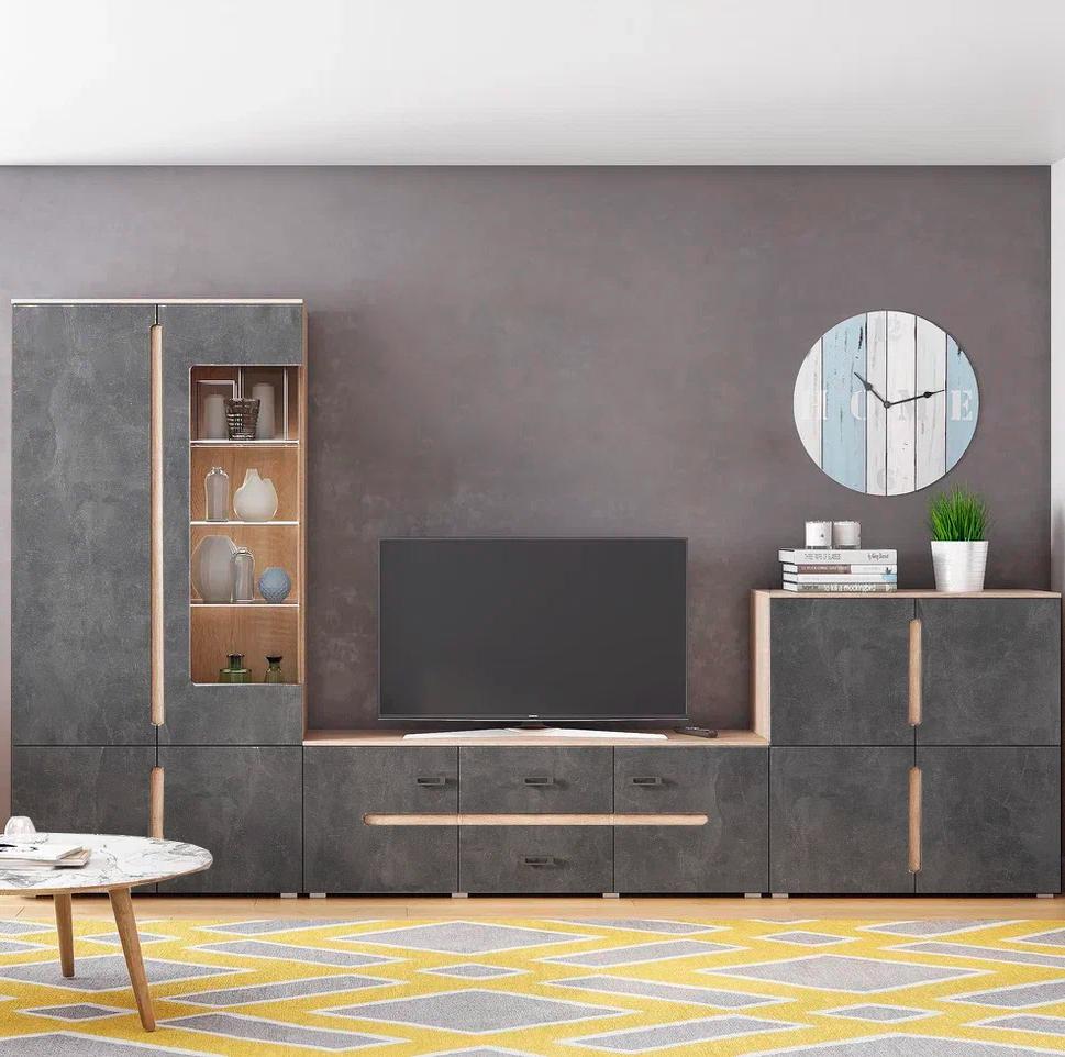 Тумба ТВ КИМ // Дуб сонома,Бетон темный