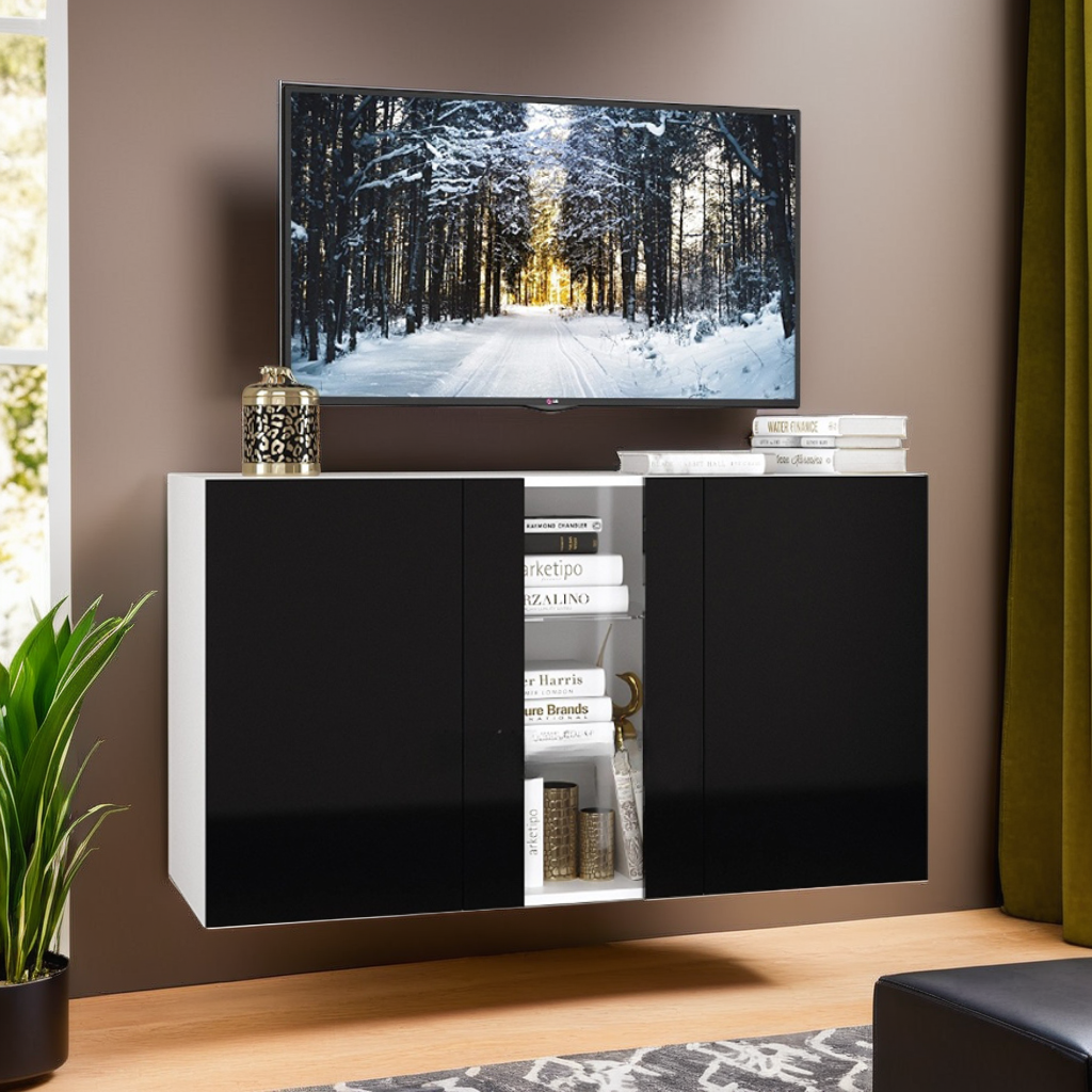 Тумба ТВ навесная ФЛОРИС ТБ-002 // Белый,Черный глянец