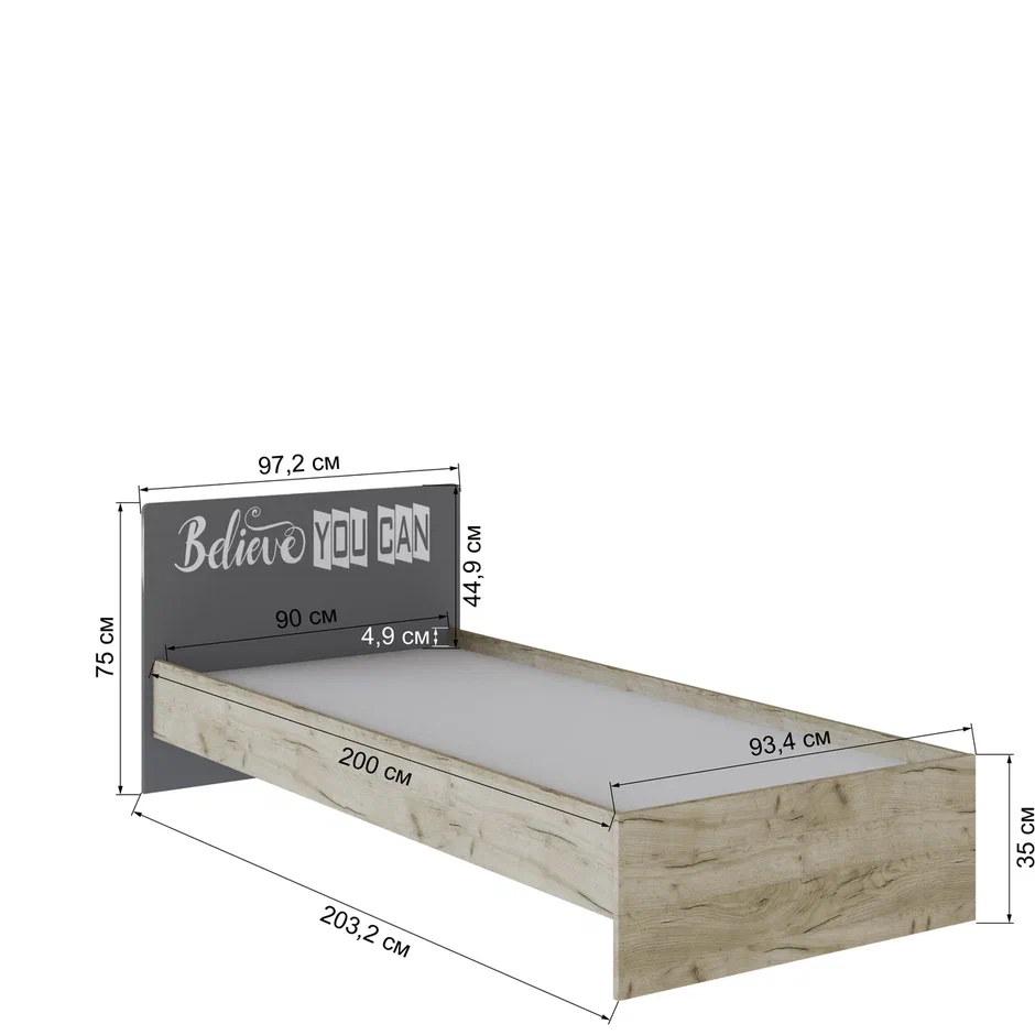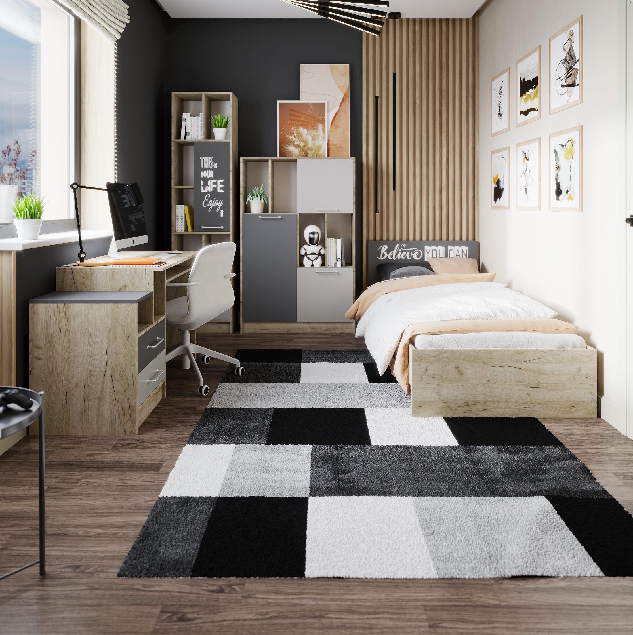 Кровать КОЛИБРИ 900 // дуб крафт серый, графит серый/камень серый