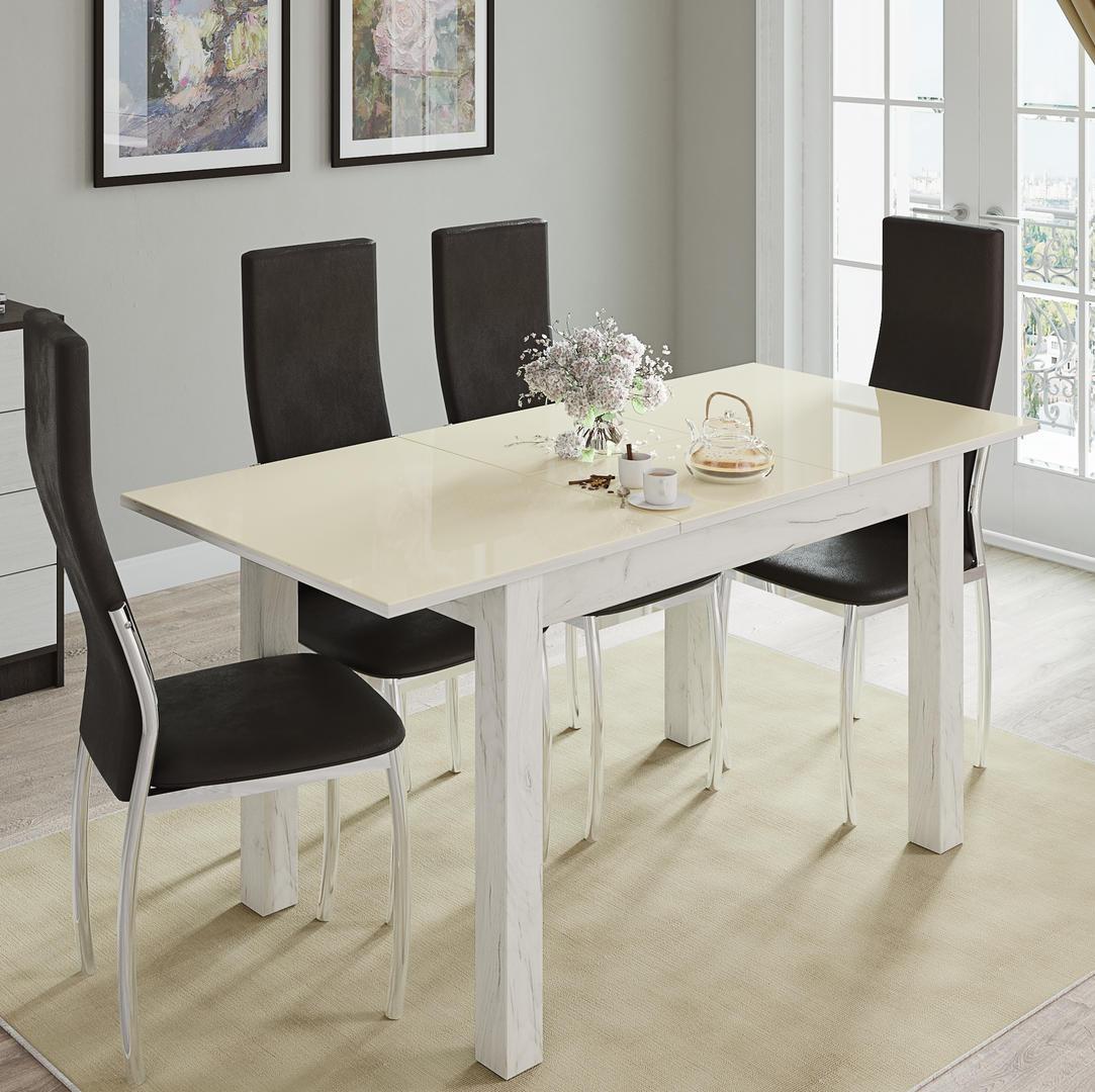 Стол обеденный БРУНО раскладной 1000х600 // дуб крафт белый, дуб крафт белый, лакобель ваниль