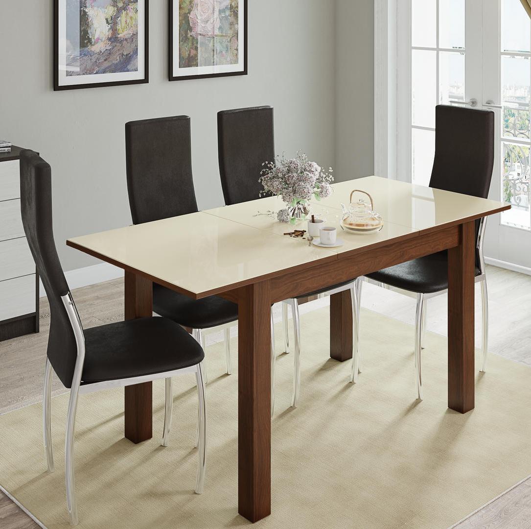 Стол обеденный БРУНО раскладной 1100х700 // орех шоколадный, орех шоколадный, лакобель ваниль