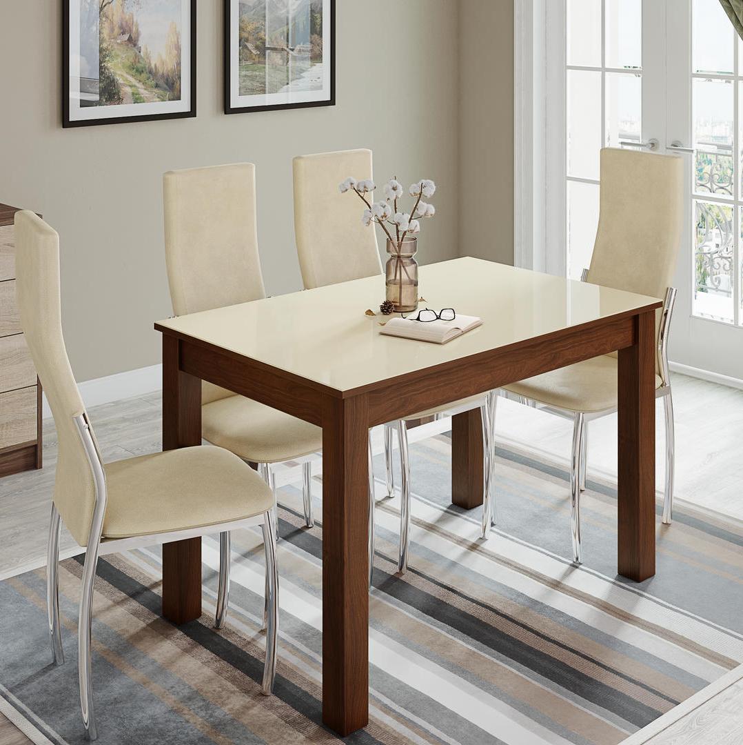 Стол обеденный НОРМАН нераскладной 1100х700 // орех шоколадный,орех шоколадный,лакобель ваниль