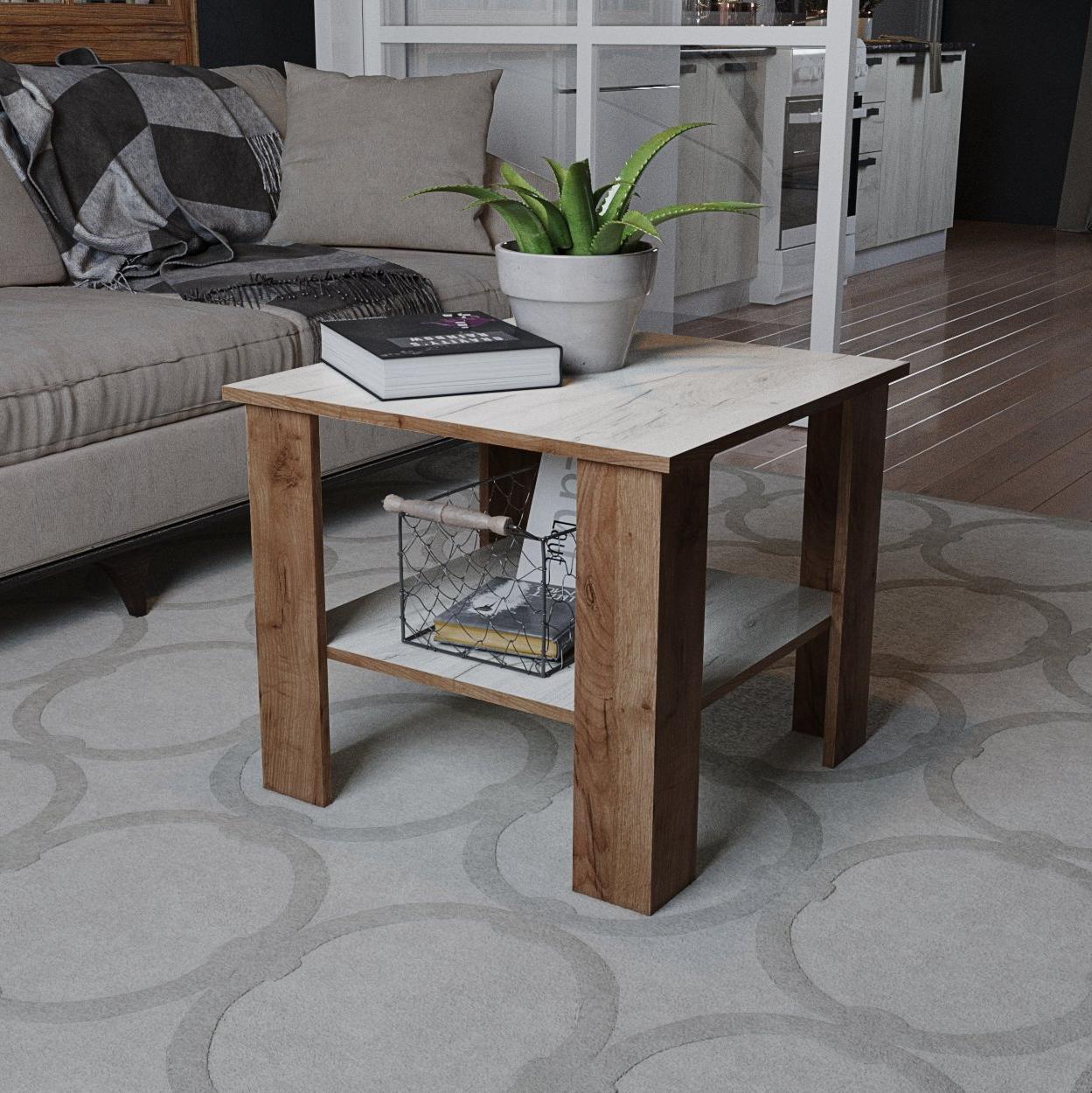 Стол журнальный КОНСУЛ-9 // Дуб крафт табачный, Дуб крафт белый